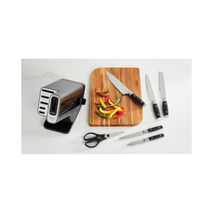 Maintain incredible sharpness at home with an integrated knife sharpener conveniently built into the knife block, restoring your blade’s superior sharpness* with just a few swipes of the lever. These premium knives stay sharp for 10 years with recommended sharpening.
